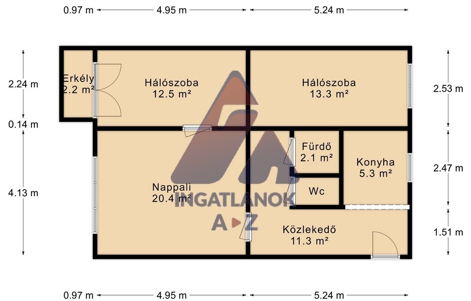 A lakás zárható folyosón keresztül közelíthető meg, amin mindössze két lakás osztozik.